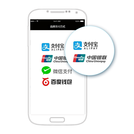 彩虹易支付,为iOS/Android原生/H5 App提供支付解决方案:支持微信支付、支付宝支付、银联手机支付、百度钱包等。